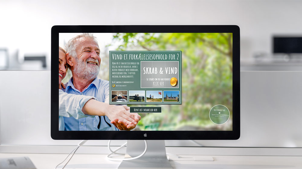 Vi tilbyder at integrere spillet direkte på jeres eget website, så alle nye brugere indsamles via jeres egen kanal i stedet for et eksternt kampagnesite.